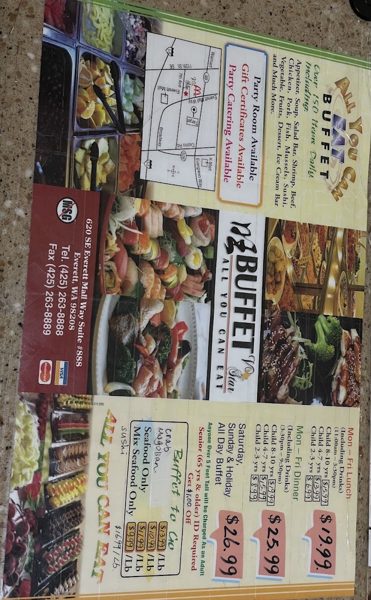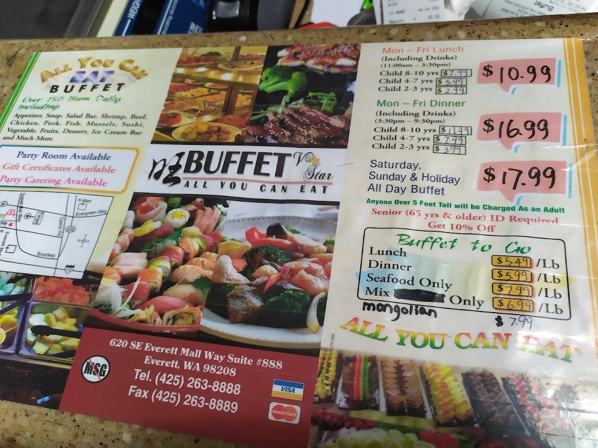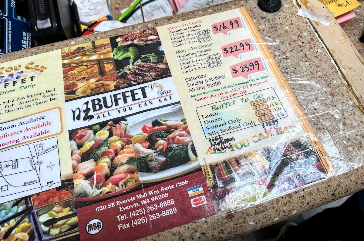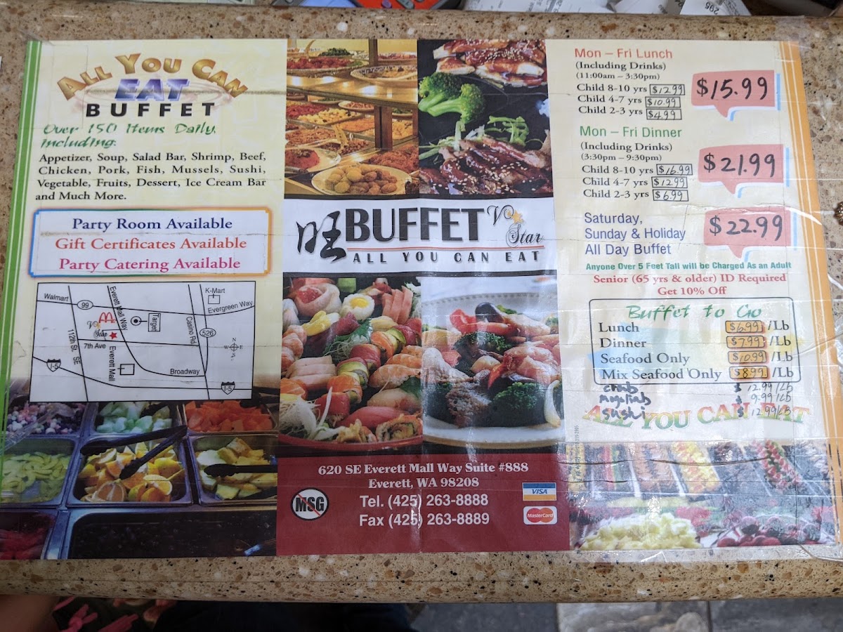 Welcome to V Star Buffet, a culinary haven located at 620 SE Everett Mall Way, Everett, WA. This all-you-can-eat buffet boasts an impressive selection, including appetizers, soup, and a vibrant salad bar along with fresh seafood, succulent beef, chicken, pork, and fish options. The sushi bar tempts with artisan rolls, while the iconic ice cream bar features over 810 different flavors!
