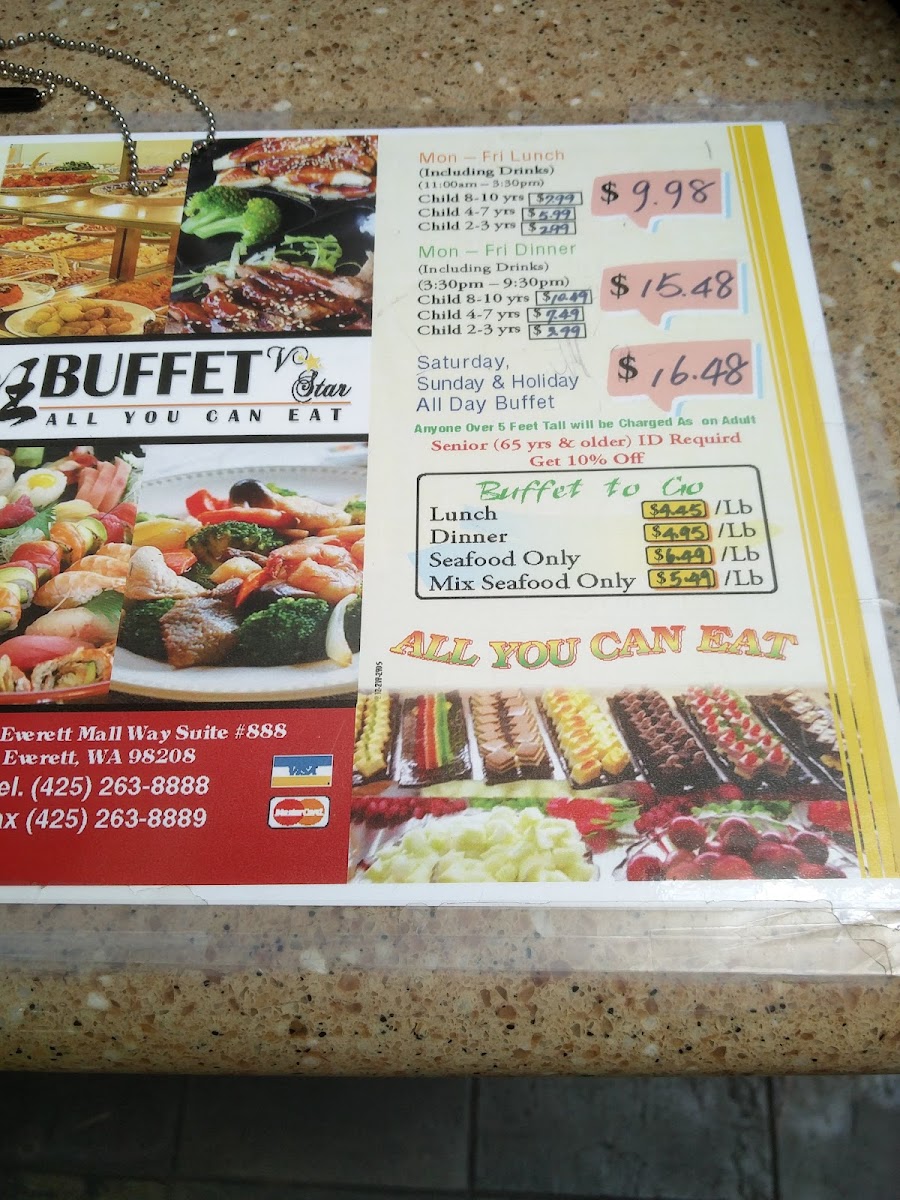 V Star Buffet Menu